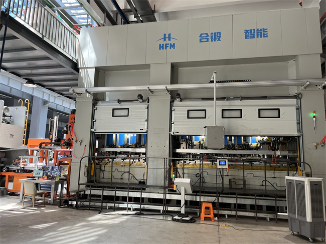 →新能源鋰電池蓋板自動(dòng)化沖壓線NCM偏擺送料機(jī)配雙頭開卷機(jī)