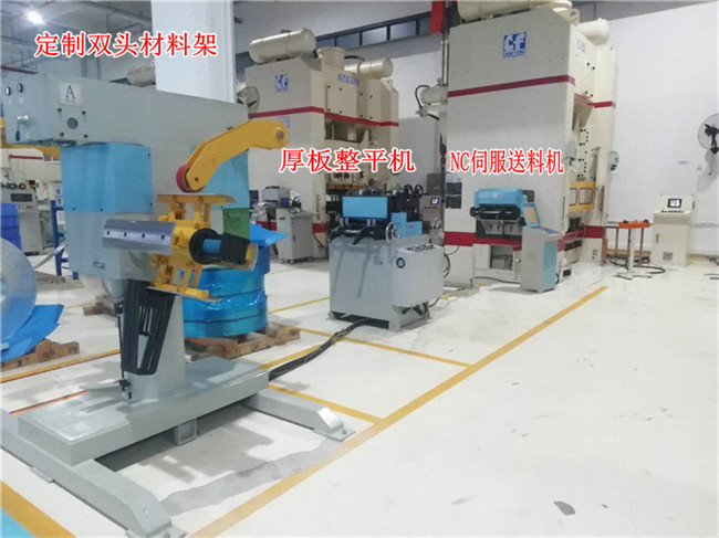 雙頭材料架配整平機,NC送料機沖壓生產(chǎn)工作視頻