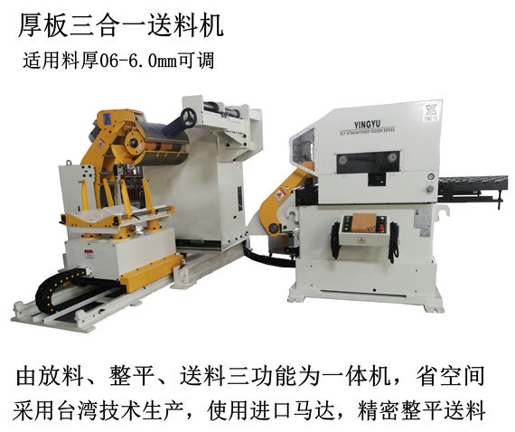 2、三合一送料機(jī)采用電腦NC控制系統(tǒng),更具人性化的設(shè)計(jì).適合各種金屬片之送料及矯正;適合0.3-6.0厚之廣泛材料,針對(duì)節(jié)省空間及容易操作而設(shè)計(jì)。